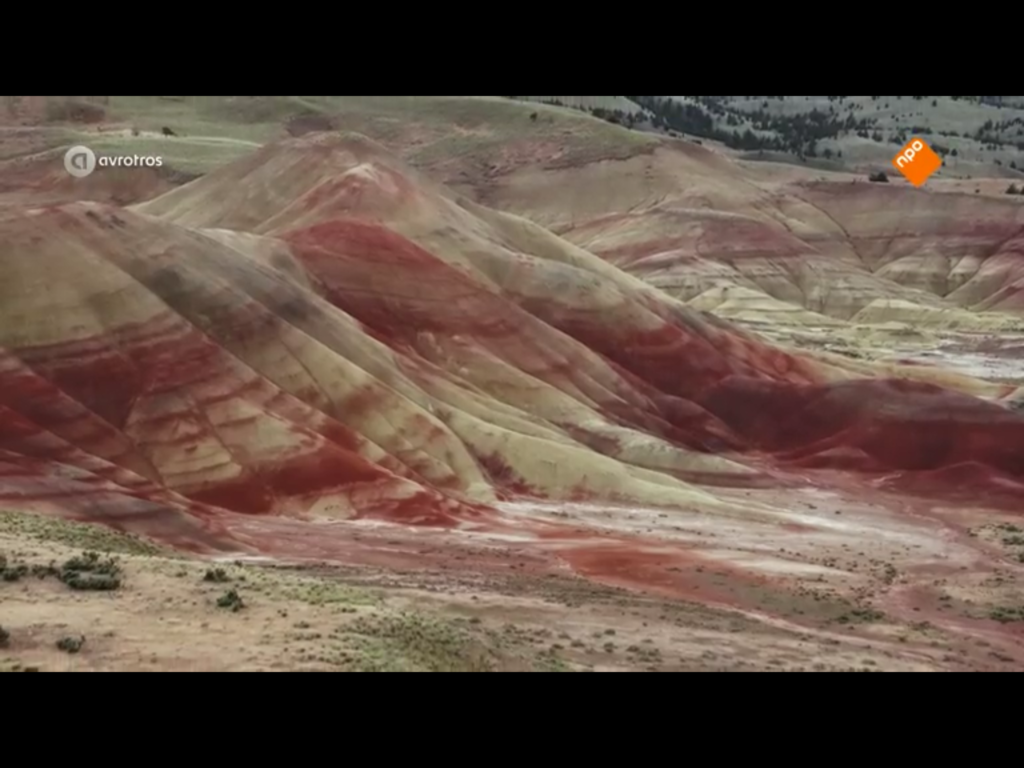 En dat is me er een! Voornamelijk vanwege het bizarre landschap. Die heuvels zijn echt te gek, ik wil er vanaf glijden met een karretje, gewikkeld in bubbeltjesplastic. Superglad en perfect en gekleurd. Geel en ook dieprood alsof er kuddes buffels op zijn doodgebloed. Het zijn de Painted Hills en ze worden beschouwd als één van de zeven wonderen van Oregon. Ik wil weten wat die andere zes wonderen zijn. Ik denk dat die rappende veeveilingmeester van een paar weken geleden in het rijtje thuishoort.